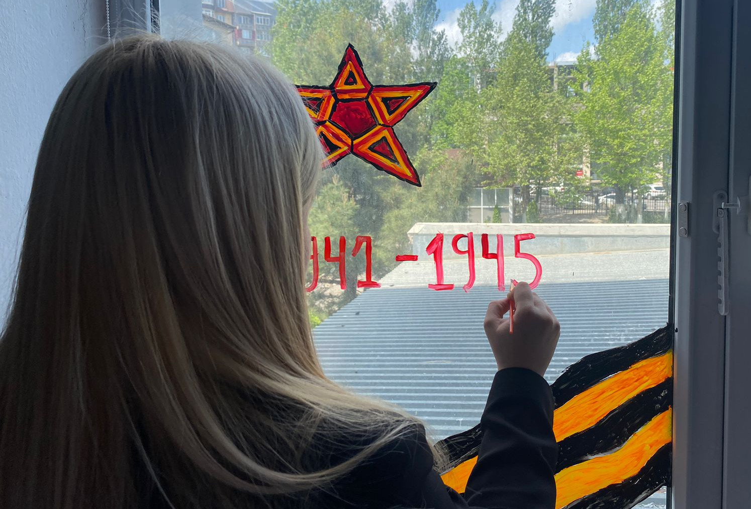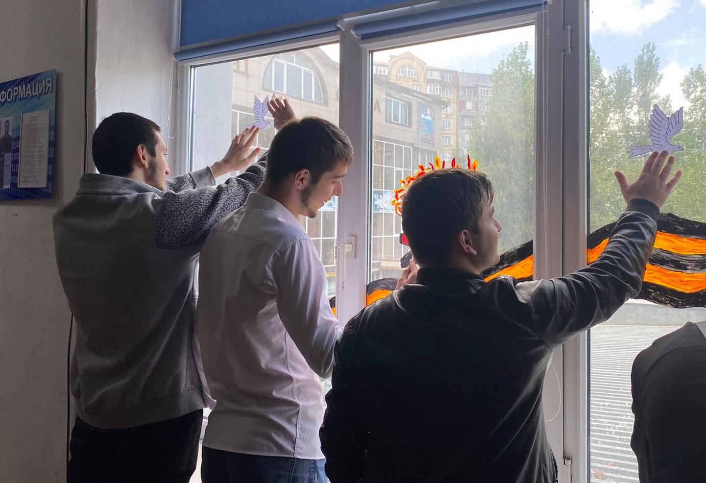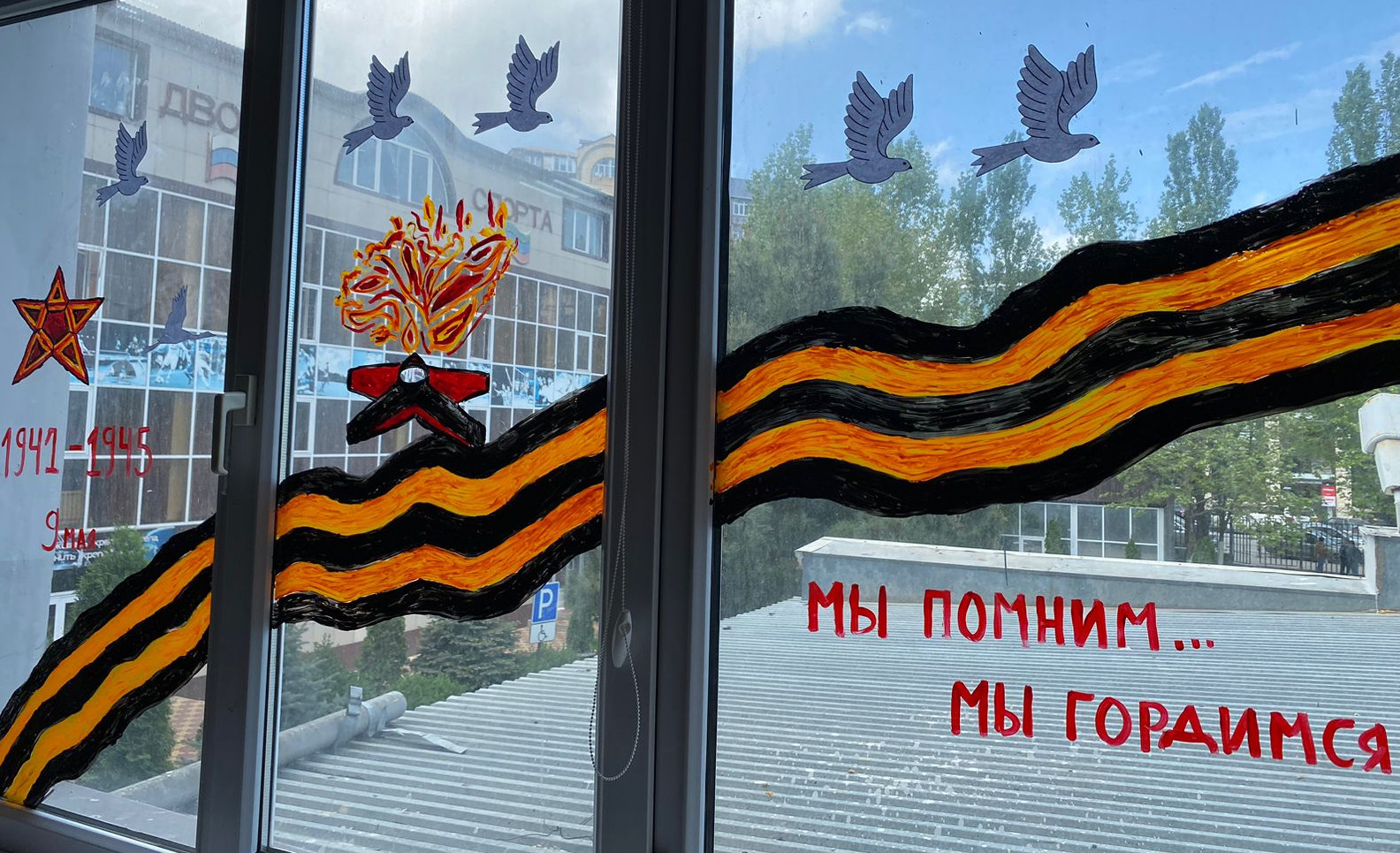 Учащиеся совместно с преподавателями оформили окна аудиторий тематическими рисунками, посвященными Победе советского народа над фашизмом в Великой Отечественной войне.